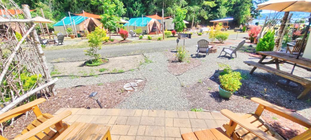 Our sister property "Mikes's Beach Resort" is located across the road. Glamping Village guests have access to Mike's Beach Resort firepits, showers, toilets, dock and beach access.