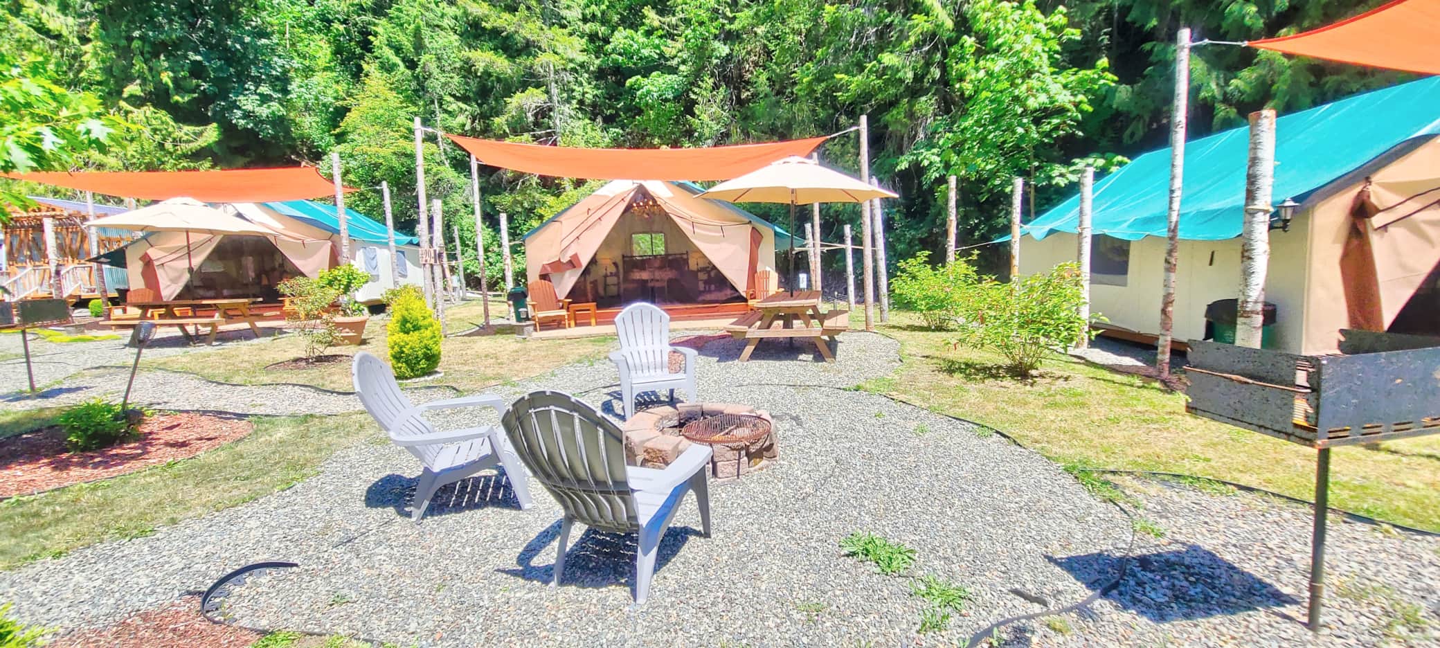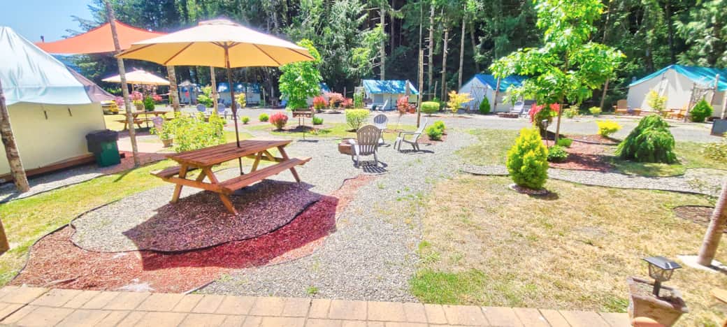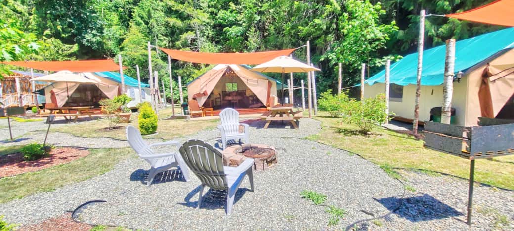 Our sister property "Mikes's Beach Resort" is located across the road. Glamping Village guests have access to Mike's Beach Resort firepits, showers, toilets, dock and beach access.